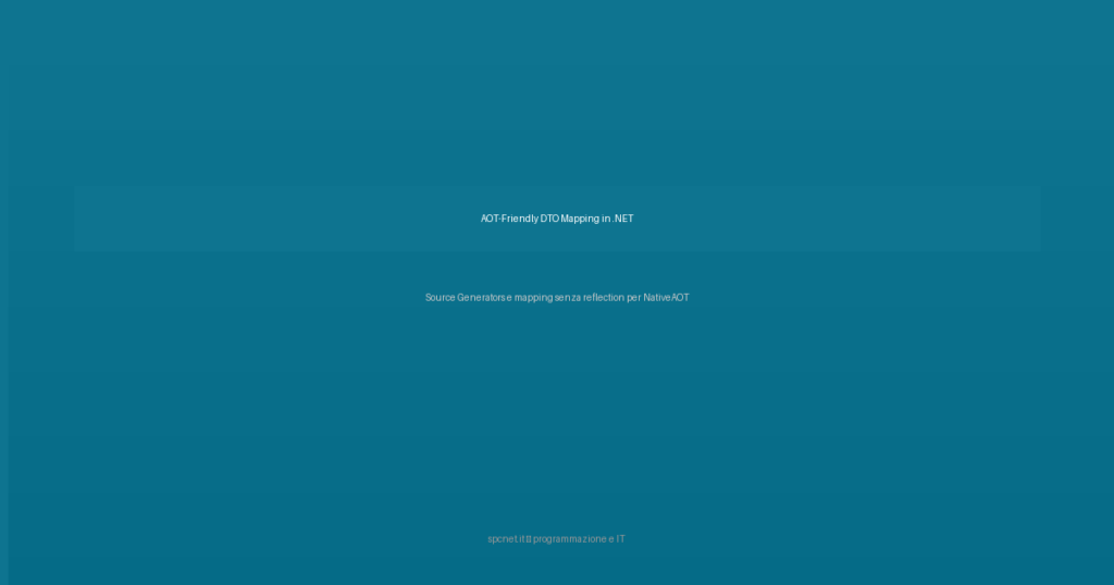 Quando si compila un’applicazione .NET con PublishAot=true oppure si abilita il trimming aggressivo, il runtime non può più analizzare dinamicamente i tipi come farebbe normalmente. Le librerie che usano System.Reflection per scoprire proprietà e invocare setter al volo — come AutoMapper nella sua configurazione classica — provocano errori in fase di esecuzione o vengono tagliate dal trimmer.