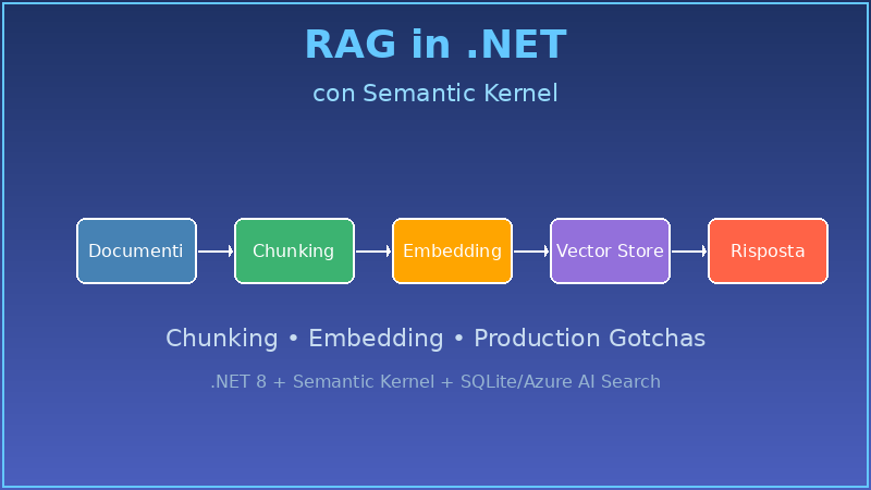 RAG — Retrieval-Augmented Generation — è diventato il pattern dominante per integrare conoscenza dominio-specifica nei modelli linguistici. Ma tra un tutorial “hello world” e un sistema RAG che funziona davvero in produzione c’è un abisso. Questo articolo esplora le insidie reali che i tutorial non affrontano, partendo da un’implementazione in .NET con Semantic Kernel.